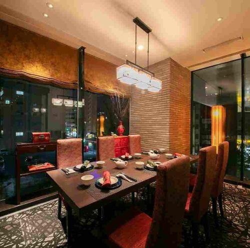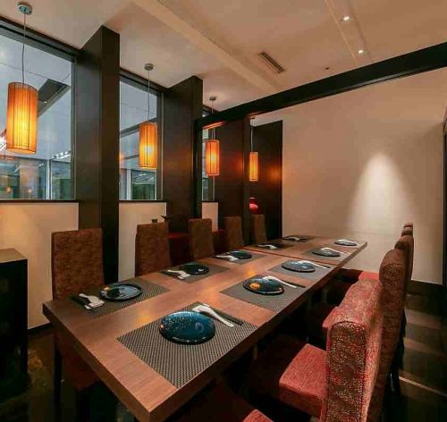 10名~14名様の広々とガラスで開放的なテーブル個室席。大切なゲストとの会や接待に人気の個室です。